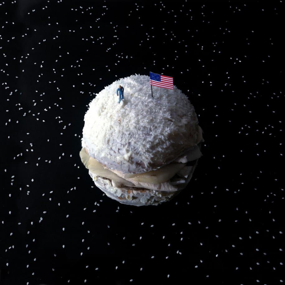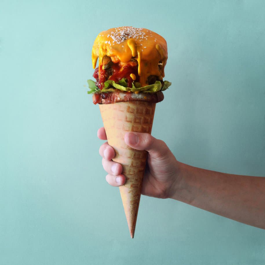 For example, in the burgers below, there were salmon eggs, pears, coconut dust, baby corn, wasabi and many other odd edibles that you don’t normally find in or on burgers. Of course, there is a big dollop of Photoshop mixed into each one too.
