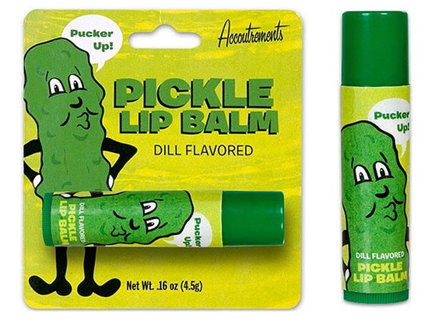 If you are bold enough to try the dill pickle mints, you might also want to try the pickle lip balm below. I know… ridiculous, but tasty.