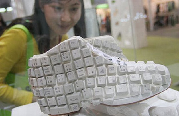 This next pair of keyboard shoes just has the keyboard on the bottom. I suppose these are for making geektastic footprints in the sand. I like these a lot too! They are so original!
