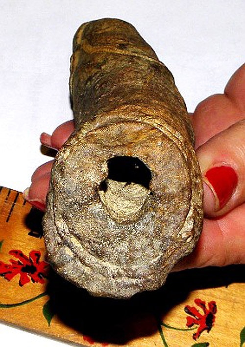 Some people think this rock is a stalactite, but it isn’t made out of limestone, so that probably isn’t right, do you agree? Others think maybe it broke off a sculpture that fell off a boat in the region around the same time. That sculpture was delivered to the Smithsonian Museum. Kenny, the man that found the rock, contacted the Smithsonian to see if that sculpture had a piece missing, but they never called him back. So, that is probably not right either.