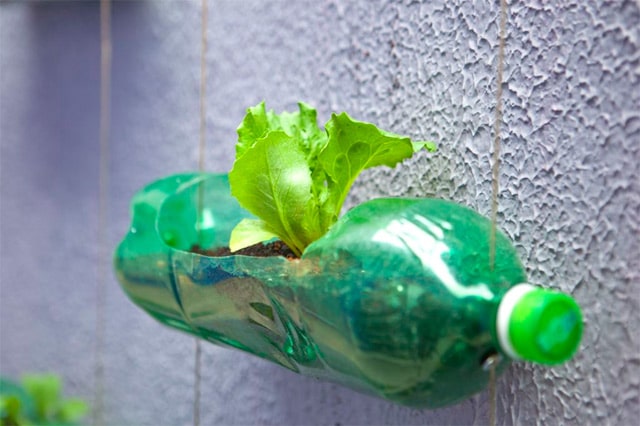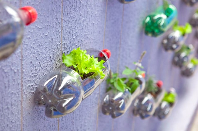 You don’t have to spend a lot of money to create a stunning garden outside your home. There are all kinds of things found in your home that can be recycled into your garden motif. I’m talking about used aluminum foil, used tea leaves, cardboard toilet paper tubes, egg cartons, plastic bottles and more. You can read more about how to use those things on How To: Recycle & Reuse Items For Your Garden. In this example, plastic soda bottles were reused to make this beautiful wall garden.
