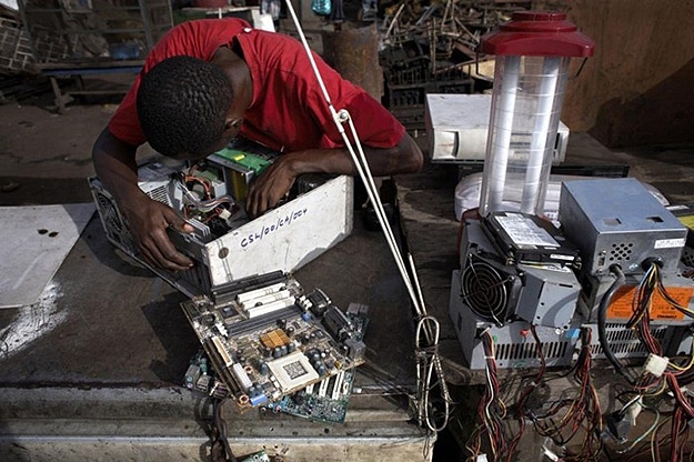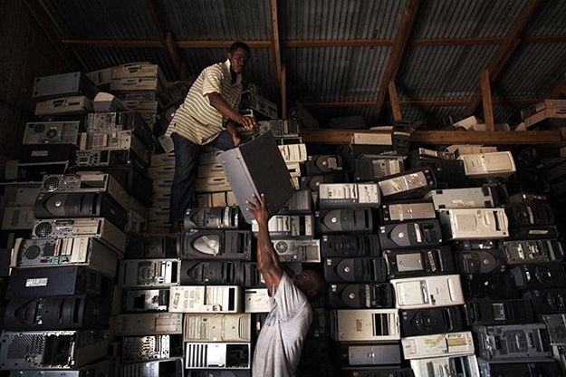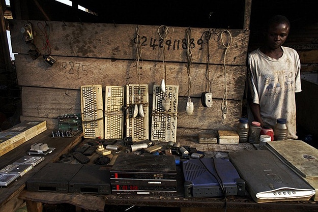 Jim Puckett is the executive director of the Basal Action Network, which monitors electronic waste around the globe. He said, “It’s the only part of the world where you’ll go and see thousands of women on any given day that are sitting… basically cooking printed circuit boards. As a result, they’re breathing all of the brominated flame-retardants. You smell it in the air. You get headaches as soon as you enter this area. It really is quite sad.” Apparently hundreds of containers leave North America every day full of electronic waste. Once those containers are delivered to the recyclers in Ghana, and they have gone through it all to salvage what they can, it gets dumped here to be burned. This is sad beyond belief.
