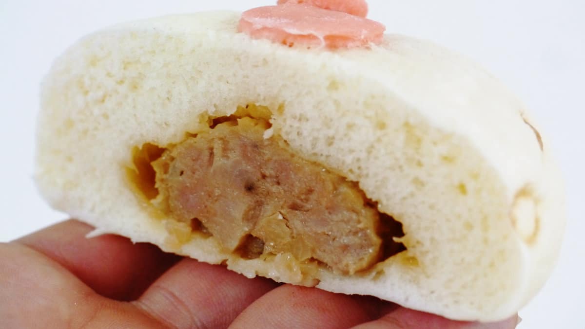 Just like you’ll find with many types of pastries in that part of the world, there is a little hidden surprise inside each one of these baked buns. It’s of course pork, which is stuffed in there kind of like a hot dog. This particular one is seasoned with soy sauce and onions.