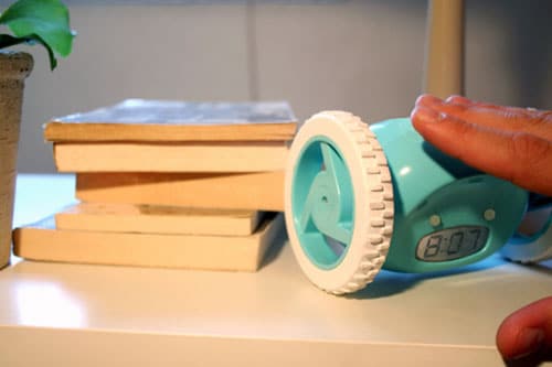Clocky is like a pet alarm clock. It allows you to hit snooze in the morning ONE TIME for up to 9 minutes. If you don’t get up after that, it does a high flying (up to 3 feet) jump off your nightstand and starts rolling around the room. Clocky forces you to get out of bed and chase it down to turn it off. The only way to keep it from doing this is to find a screwdriver and take off the wheels.