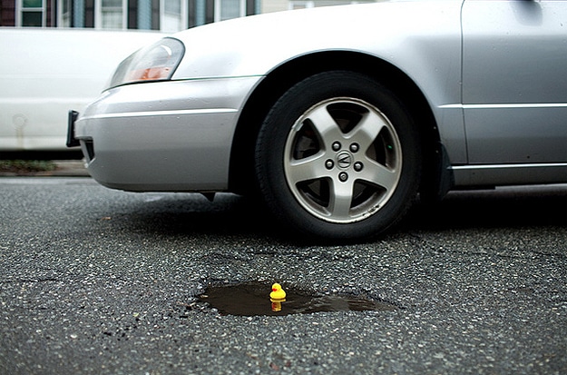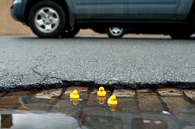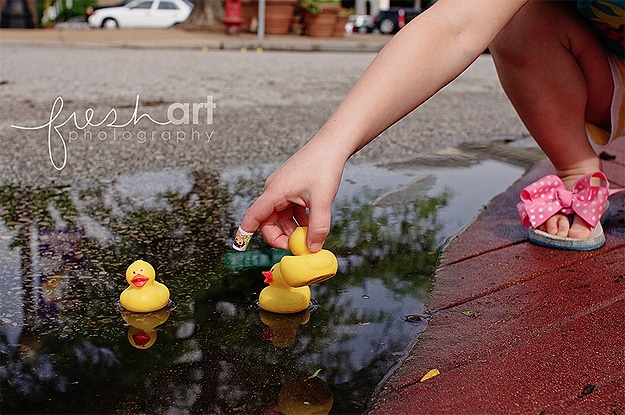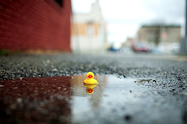 For those of you who don’t like rainy days, I think I found a way for you to immediately make them fun. I stumbled across a blog this week called Color Me Katie, and I absolutely love it. One day after a rainstorm, Katie decided to turn dirty rain puddles into fun duck ponds. With a small package of rubber ducks and a camera, she’s brought a lot of smiles to people all over the Internet.