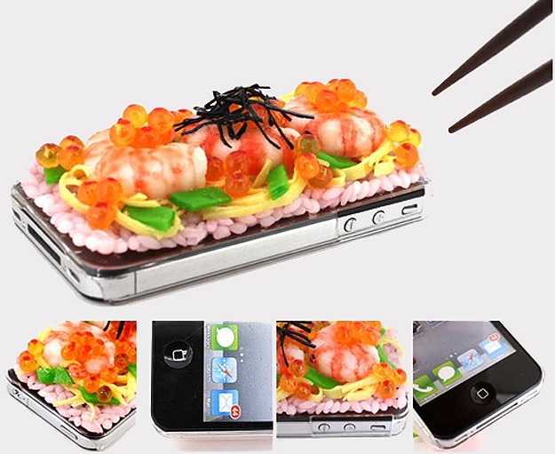 This first case is spectacular because each piece of rice is handmade and looks unbelievably realistic. The meat on top of the rice is Unagi, which combined with the rice, is a very expensive meal in Japan. It’s perfectly seasoned and cooked eel carefully laid on a bed of steamed white rice. Nom nom! This case becomes available next month for about 50 bucks (3,990 JPY). The only down side to this I see is that the camera on the phone won’t work unless you remove the cover. You can pick one up over at Strapya-World.