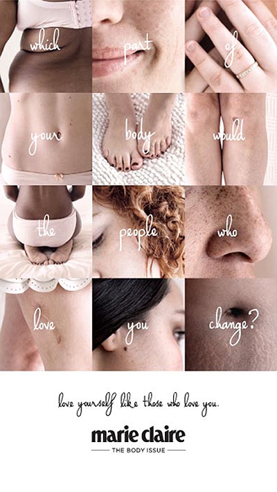 Marie Claire magazine recently asked several design agencies to design posters that would challenge our minds when it comes to what we consider the perfect body. Think about it, what is the perfect body anyway? Who decided that? The result of their request manifested in these very thought-provoking illustrations. My favorite one is about how the people who truly love us don’t want us to change anything. Perhaps we could learn to love ourselves like those who love us do. If you would like to join the Twitter conversation about this, just follow the hashtag #MCLoveMyBody.