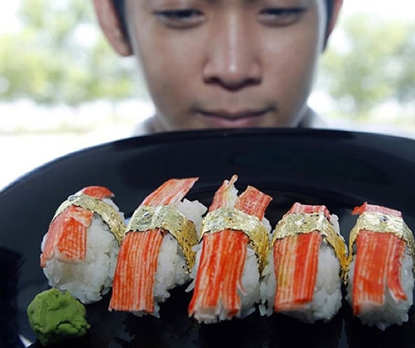 Chef Angelito Araneta, from the Philippines, who also happens to be the same guy who created the cake above must really have a thing for gold and diamonds. He also created this sushi covered in gold and diamonds, which sells for $2,750 for 5 pieces. Gulp!