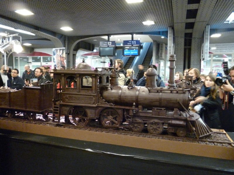 You know, a chocolate train of this length is long, but it’s not that long. I think this might be one of those world records that wouldn’t be that hard to beat. But then again, what do I know. I’m not a chocolate artist, I’m just a chocolate eater. If you want to see more chocolate deliciousness, check out this Willy Wonka Style Chocolate Room or this Chocolate Record That Plays Music.
