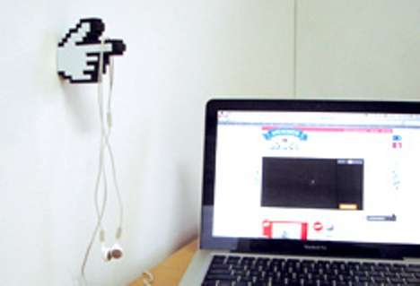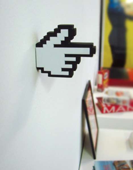 For the times when you step away from your computer, even though it may only be for a few hours to get some sleep, it can be nice to have somewhere to hang your online suit until you wake up again. That’s when the über cool 8bit mouse pointer hand is a perfect interior design feature.