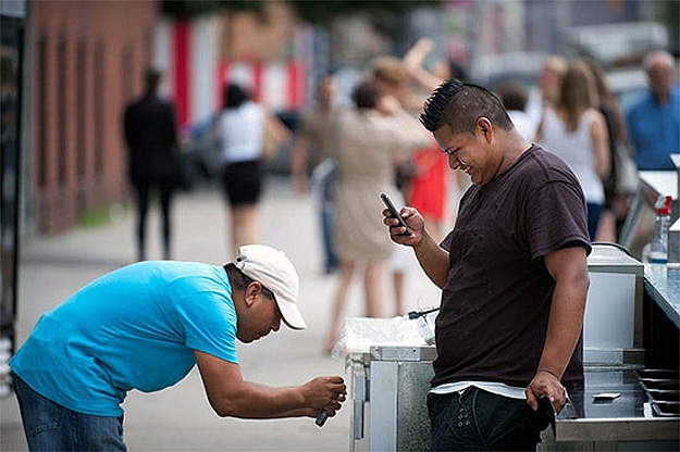 Photographer Joe Holmes is very interested in how people get lost in their own worlds when they are typing away on their smartphone in public. He was so fascinated by it that he started a project called “Texters,” which is full of photographs of people texting while walking down the street, while sitting in cafes, and while just hanging out outside. Interestingly enough, Joe is from New York City, and I wonder if that is where these photos were taken. You can view the entire collection on flickr. I still say these people look waaaaaay to happy to just be texting. I think they’re tweeting. :)
