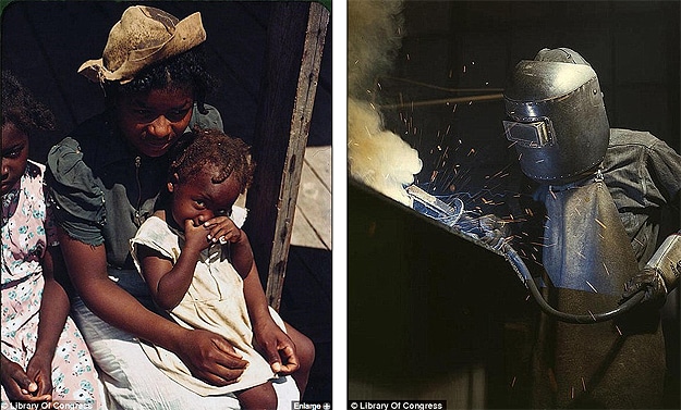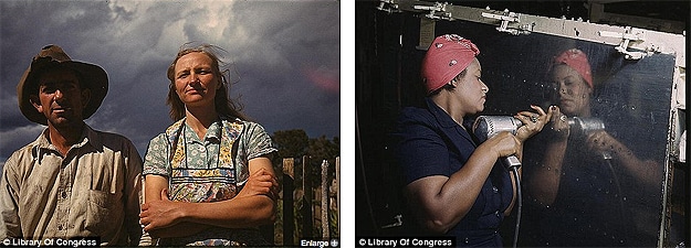 These particular photos belong to the Library of Congress, and they were included in a 2006 exhibit called Bound for Glory: America in Color. They were taken by photographers who worked for the Farm Security Administration/Office of War Information.