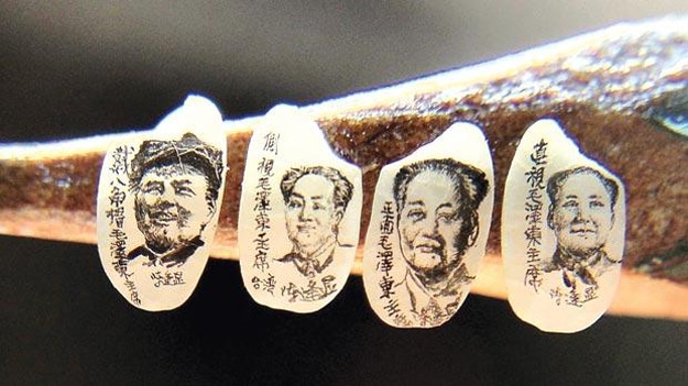 Chen hasn’t always preferred to work on a grain of rice. He’s tried a grain of sand and even really thin noodles, but he likes creating portraits on a grain of rice the best. I can’t even imaging making something so spectacular on something as small as a grain of rice, and he definitely deserves all the attention he can get. He sometimes takes more than a month to complete one of his rice portraits.