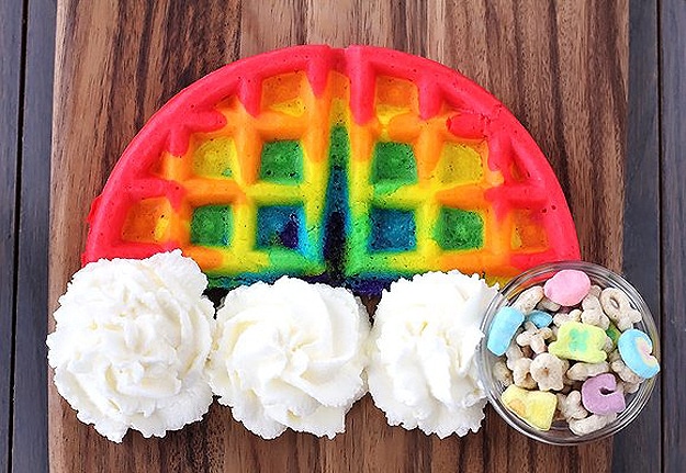 There is just something about a rainbow bento that makes it look extra delicious. It almost even looks too good to eat! Below is a collection of rainbow colored bento to brighten your day (and your lunch). If you aren’t in the mood for bento, as an added little bonus, I put a rainbow colored waffle design below too. That is another one that would be super fun to make. You can get the recipe and tutorial for how to make those on Rainbow Waffles. Both of these things would be a great project for anyone who likes to spend time in the kitchen. After all, the joy in these is definitely in the creation itself. They will most likely be gobbled up in a fraction of time compared to how long they take to make. Happy bento-ing and waffle-ing!