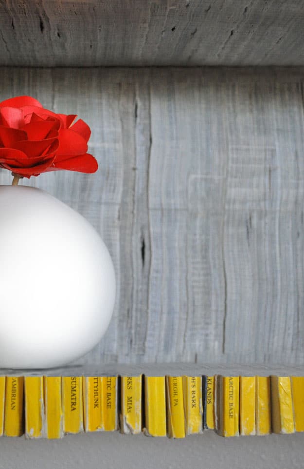 Created by Sean Miller, a designer from Seattle, this brightly colored shelf is a surprisingly useful and unique piece of home decor. According to Inhabitat.com, “First Sean coated the magazines with a water/starch mixture and then he placed them under pressure for about a week to harden. Next he took a band saw to the consolidated stack and carved out the space for a shelf. About 80 magazines were used.” It sounds really simple, doesn’t it? Nice job Sean!