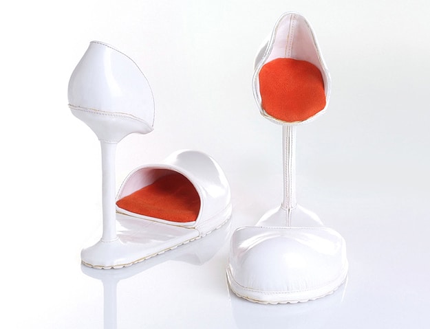 Israeli designer Kobi Levi created this collection inspired by everything from stepping on a piece of gum (my favorite shoe below), to a blow up doll (the pink shoe), to peeling a banana. He says, “The shoe is my canvas.” I know what you are talking about Kobi, and I love your unique style! From what I can find, these shoes are not for sale; however, I’m sure you can check out Kobi’s blog for possible updates about that.