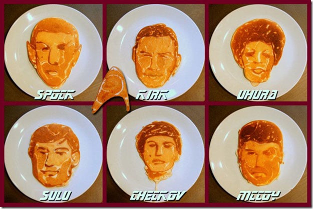 Pancakes are one of life’s most guilty pleasures. Add a few dollops of whipped cream and some fresh strawberries, and you’ve got yourself one of the best breakfasts in the whole world, or at least to me. Apparently a lot of geeks like pancakes, and we’ve seen several people geek them up over the years. We’ve featured everything from these Star Wars Pancake Molds to the Pancake-Making LEGO Robot. One thing I haven’t seen before now though are Star Trek pancakes, or in this case, Star Trek face pancakes which are the perfect edible portraits of Star Trek characters.