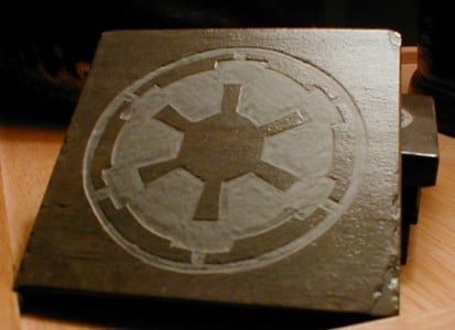 These are the Star Wars Coasters, and they come in 4 different designs. They are carefully hand carved out of a single slate of tile, sanded and then padded to make sure they don’t scratch the surface they are put on. The designs are symbols from the Empire and the Rebels Alliance, and all of them are pretty famous.