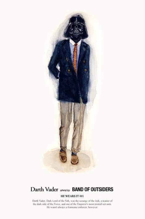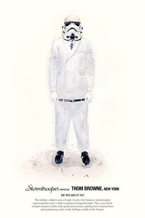 John not only designed these, but he featured fashion designers that are popular now, as you will see below. I love the use of color and style! I have to admit, it’s a little strange seeing Darth Vader look so chic and GQ, but hey, I could get used to this real quick. You can check out more of this collection called “He Wears It – Star Wars & Fashion” on John Woo’s site. Great job!