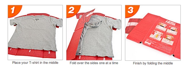 It’s a nifty little cardboard helper that will take you through all of the steps, one fold at the time. This t-shirt folder could get you back on track for a tidy and welcoming closet. All you really need to do is put your t-shirt on the folder and follow the written instructions. You will be a master t-shirt folder in no time at all.