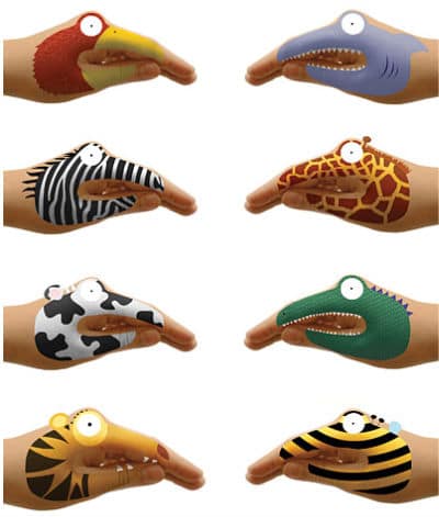 “Enter an era of non-sweaty puppeteering for you and your wee geek! These temporary hand tattoos apply safely and easily using just water. Center the eyeball at the side of your index knuckle and line the top and bottom lips with your index finger and thumb. Once the tattoo is applied, it will move with you! Just flap your fingers and start yapping away. For the more down-to-earth geeklings, we have the animal set, which contains the bird, shark, zebra, giraffe, cow, alligator, tiger and bumblebee. If your geekling is more whimsical (or maniacal), the monster set contains crazy creatures of all stripes and spots, waiting to do the bidding of their new master or mistress. Best of all, no sweaty hands! It’s the perfect toy that your children can take with them wherever they go. Namely, outside” – Think Geek They are available at Think Geek for $5.99.