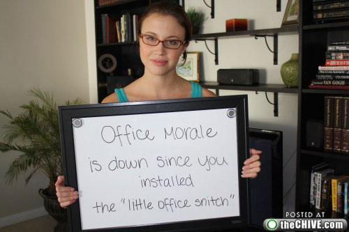 At the time, I was in my 20s and trying my best to climb the corporate ladder. What is a girl to do in those situations? Since then, I’ve ditched Corporate America altogether, and I’ve worked for myself for a decade. Ahh… it’s much better. Looking back, I wouldn’t trade those memories for anything, that was an interesting time in my life. This girl below (allegedly named Jenny) quit her job this past Monday and emailed all these pictures to 20 people in her office. She is my new hero. You go girl!!! #hellyeah Thank you @taltalk for this tweet which made my day.