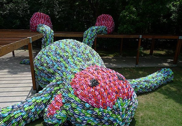 What would you do if you had several thousand extra pairs of flip-flops lying around? You’d make a big ‘ol fat monkey sculpture with them, right? Look closely at the pictures below. Now do you see what I mean?