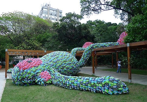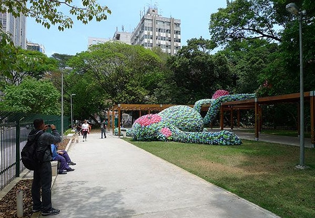 Who the heck thinks of this stuff anyway? Well, in this case, it was an artist named Florentijn Hofman along with a bunch of student helpers in Brazil. It’s almost summertime there, so tis the season for flip-flops. Called “Fat Monkey,” this installation was created for Pixelshow 2010. It is currently assembled in a park in Sao Paulo. I’m sure it is fun for the walkers and joggers to see this as they pass by.