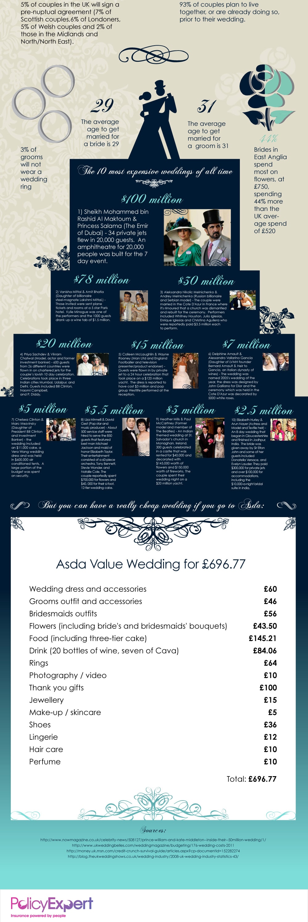 In this article, I am not going to just include one infographic since I feel that would not be presenting the whole truth. So, I am going to include three. Each estimate is slightly different, and to get a clearer understanding of the statistics, you can just have a peek at all of these and somewhat bundle them all up. The largest expense was of course security and that post alone stood for around 93% of the cost of the wedding. The rest was spent on the wedding itself, and another 3% was spent on staff. The wedding itself, according to some sources, was the most expensive wedding ever.