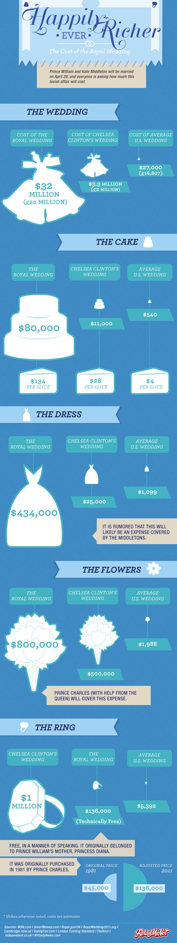 The fact is that many people have tried to estimate what the royal wedding cost, and the numbers being thrown around are quite staggering. There have of course been a number of interesting reports delivered, but what I found most interesting is that pretty much every infographic designer has created an infographic presenting the data based on the cost of the wedding.