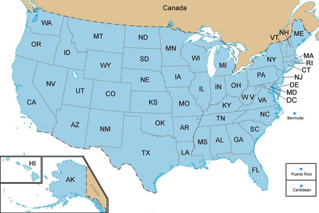 In case you aren’t from this country (or in case you live in Maine), I also included a map that shows the name of each state, so you know which states you are looking at. Here is a list of state abbreviations. Mental note: Don’t ever move to Louisiana or Alaska.