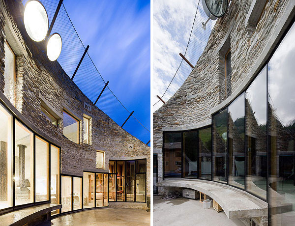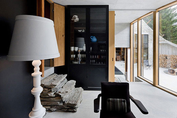 Built into a hill, this house, located deep in the mountains, would be the perfect place to getaway and a great place to tweet all weekend without being bothered by anyone! The floor plan was developed by SeARCH and Christian Muller Architects. It features a secret passageway and huge windows (which makes it surprisingly bright for an underground house). Oh my gosh, my mouth is actually watering right now.
