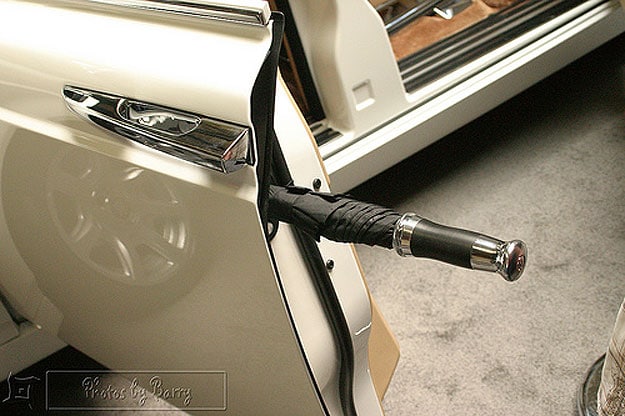 After reading that post, I learned that some cars already have this feature (but none that I’ve ever seen). You can see some pictures below. While a few cars have what they call an ‘umbrella holder,’ there is one car that takes this concept even further. The new 1.2 million dollar Rolls Royce Phantom Luxury Coupe not only has an umbrella holder, but the holder itself will dry the umbrella. In other words, you can close up your umbrella and put it in there without worrying that it’s too wet. It will dry just fine, automatically.