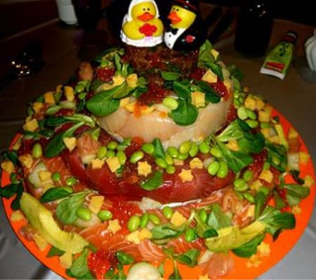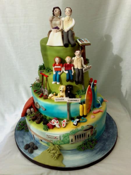 Couples choose their cake based on their taste and their traditions. I remember the last wedding I helped plan, the couple wanted something with five layers because of their family tradition. It was supposed to bring them good luck and prosperity as a wedded couple. If you were to ask me, I want my wedding to be simple, including the cake. When I was looking at some cake designs, I came across some really unusual ones that made me either laugh or just stare in amazement at the creativity. I have chosen to share them with our readers. Some are a bit bizarre, but of course, to each his own. My favorite here is the one from the couple from Wall Street Journal, I think its very romantic. What do you think?