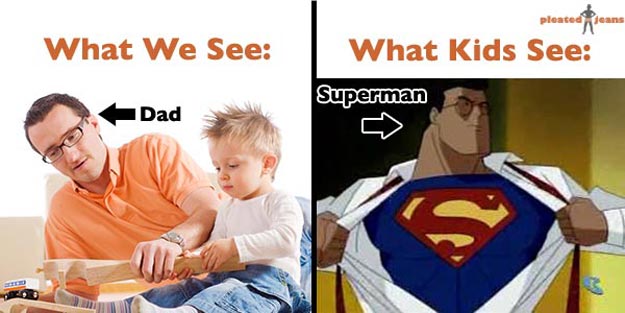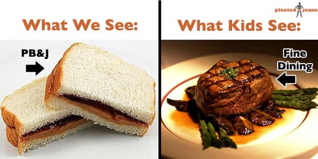 Jeff Wysaski knows all about how kids view things differently than adults. His adult vs. kid comparisons on pleated-jeans really made me laugh. It’s amazing how seeing pictures like this can bring back so many memories. If you would like to see the whole collection, go to What We See vs. What Kids See. Suddenly I have the urge to go jump on the bed.