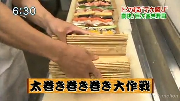 Although this restaurant may hold the title for serving the largest pieces of sushi to its customers, this is not technically the world’s biggest piece of sushi. The world’s biggest piece of sushi would never be able to be put on a restaurant’s menu, well, unless you ordered it a month in advance so they had time to prepare it. If you want to get a look at that badboy, you can click over to Foodbeast. Unfortunately, this roll of deliciousness doesn’t come cheap. It costs about 15,000 Japanese Yen, which is about the equivalent of $195. I’ve spent that much on sushi before on a night out with friends, so I suppose it’s not thaaaaat much. It might be worth it just to try it once! You can watch them put it together in the video below. Nom nom!