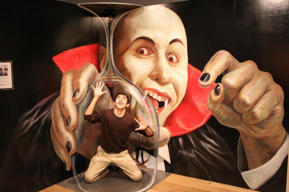 Where do you find these? Well, one of the coolest places for photography is actually the Trick Art Museum in Odaiba. There you can find all kinds of scenery and photograph yourself kicking a ninja’s butt zero gravity style, or falling into a shark’s mouth. There are a ton of different backgrounds to choose from. There’s no doubt these would make some mind boggling Facebook timeline headers or even profile pictures.
