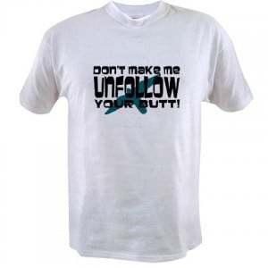 I took the time to round up the 50 most hilarious and geekiest t-shirts all about Twitter, and believe me when I say I found some really great ones. If you want to get any of these, just enter the wordings on the t-shirt into Google and click search and you will most likely get a hit or two where to buy them. Now, to bring on the awesomeness…