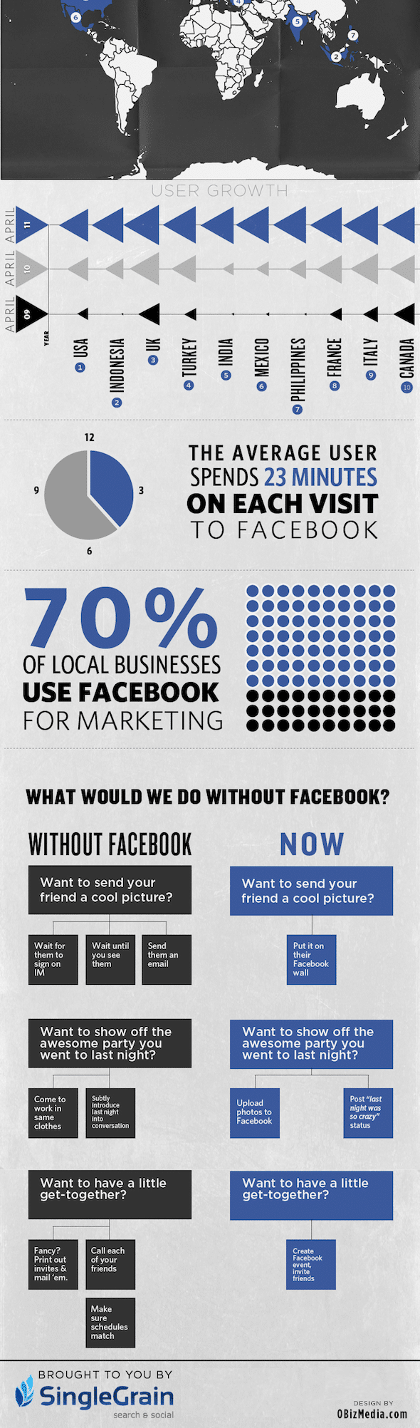 What if Facebook would have never been invented? What would we have been missing out on then? Search and Social company, SingleGrain, put together some statistics in a quite well done infographic that will have you marvel as much as I did when I looked at it. The numbers are just insane, and I am blown away by the balance of things since we here on Bit Rebels tend to have two different bases when it comes to our website and the social networking platform.