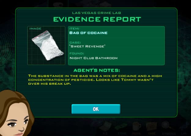The game starts out with the basic tutorial and, of course, you get to choose which character you want to play. You also get to choose a case to work on. You purchase tools at their store with the money that you are given to start with. Then you begin analyzing a crime scene. When you get a clue, you are asked to go to your personal lab where you get to analyze and process the evidence. Of course, you need to personalize your lab, and to do that, you need to purchase more things in the store. You can use your game currency, or you can buy currency similar to the other games you find on Facebook. It is fun to play and get excited by the case. I particularly like the graphics and the way they allow you to view the case in replay. It also allows you to play some mini-games to earn energy (you lose energy while solving and checking for clues, but you get to earn it back so don’t worry). I have included a trailer and some screen shots for your to see before you start playing the game. Remember though, just like any of the Facebook games, it can be quite addictive!