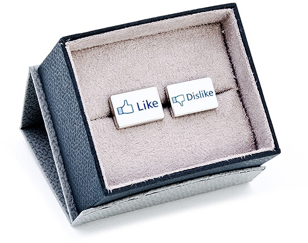 So, I get it that we are addicted to Facebook, and it seems like a lot of companies are doing anything they can to get a piece of that pie. Facebook novelties are everywhere. This is one that I would probably have to draw the line on though. I can’t imagine any self-respecting geek wearing these “Facebook Like and Dislike Social Network Cufflinks.” Supposedly they give you the ability to set your mood via your cuff.