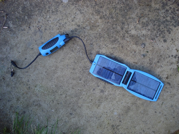 Those that know me on Twitter are very aware that I tweet and hike at the same time. Many a mountain has seen me stumble up it with a rucksack on my back and an iPhone in my hand. If I’m away camping and hiking for days at a time, how do I keep the juice flowing to my device? Well, I always pack my Power Monkey Explorer Solar Charger. It’s my life support to the outside world when I’m in the wilderness. It’s designed with outdoor pursuits in mind, and this little gadget will help ensure your communications are always topped up. It comes in three light and simple parts, each made with robust plastic: The solar panel, the power pack and the charging adapter.