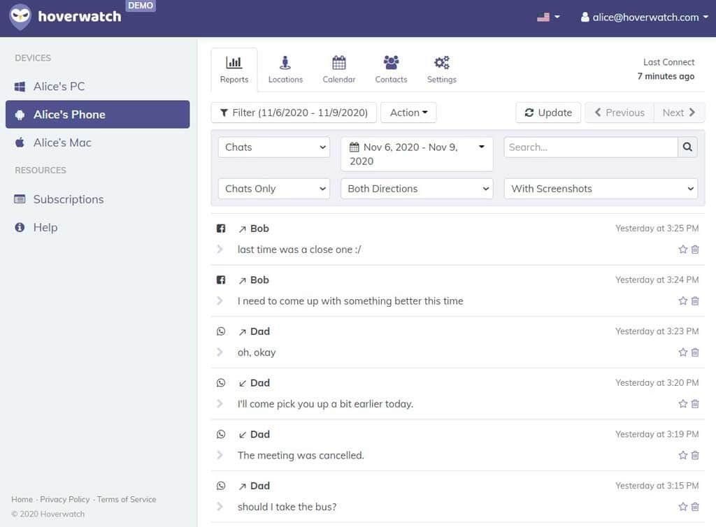With Hoverwatch tracking Facebook messenger, you can monitor audio calls and text messages being received or sent, videos, pictures, Twitter, Facebook messenger, and Whatsapp accounts, and geographical locations in a legal way.