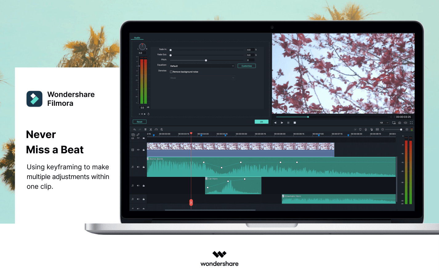 - Audio Ducking: Music interrupts the dialogue in your content? Just fade it for as long as you like.