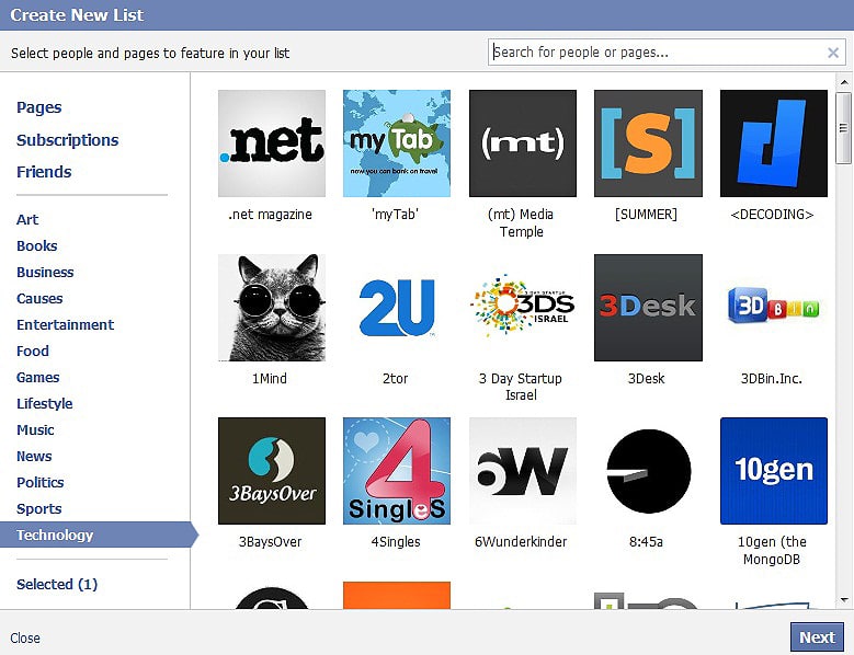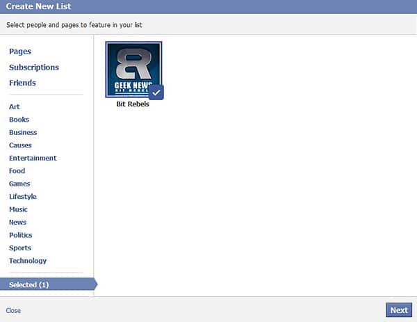 You can also choose from various categories to create a new list with Facebook Interests, on the left-hand side you will be able to choose to create lists based on Facebook pages you have already “liked,” create lists of people you want to remain informed about regularly, as well as anyone you have subscribed to on Facebook. Choose from a variety of categories as well to explore Facebook and find new interests to add to your existing Facebook lists or in order to create a new list.