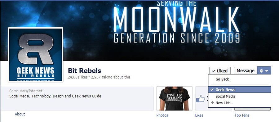 1. Go to the Facebook Page you want to add to a list of a chosen Interest (here we chose the Bit Rebels Facebook Page).