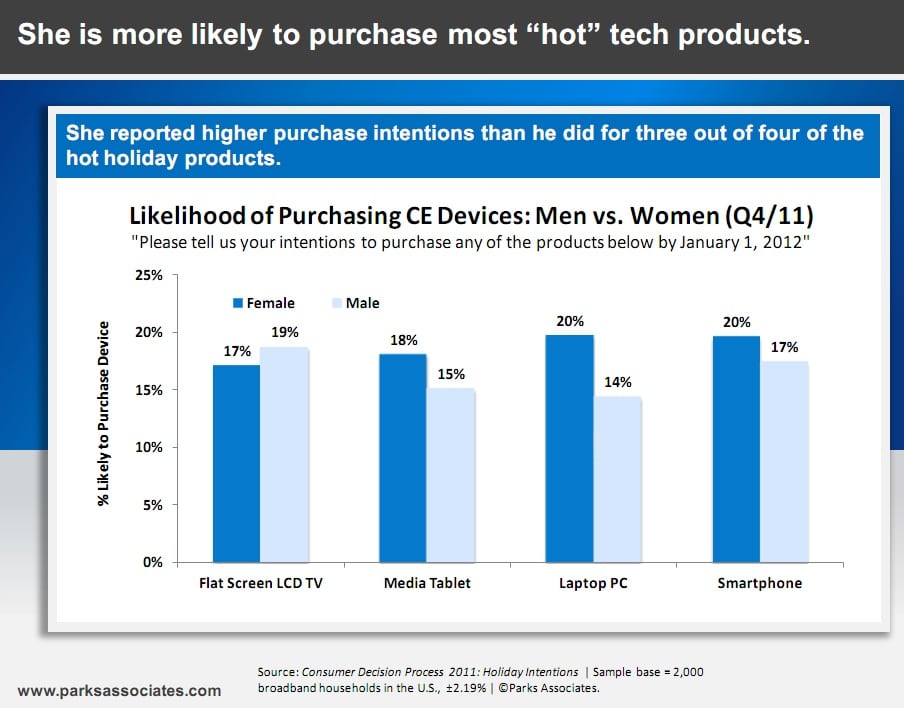 The study was undertaken by Parks Associates for HSN and speaks a lot more in the favor of women than men when it comes to social networking. It shouldn’t come as a big surprise that when you have a look at the Top 100 Twitter Users, the majority of people on there are actually females. However, when it comes to gadgets, I am a bit surprised really. I mean, I think a lot of people would agree that we have always thought that men are the ones who most likely become shopaholics when it comes to gadgets of all kinds. But, as this study shows, women are way more active on social networking websites, and they also buy the hottest gadgets. That’s just awesomeness!