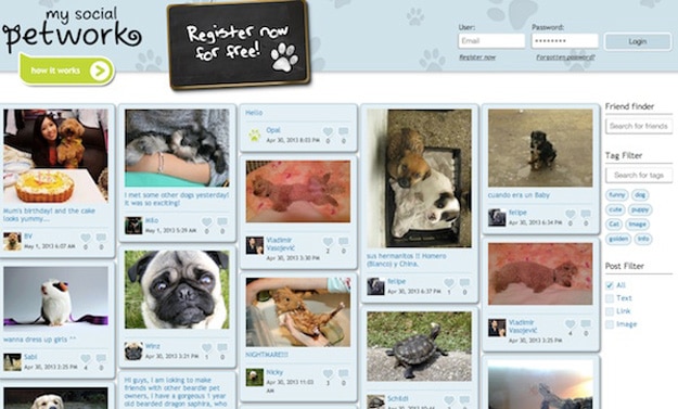 This ‘Facebook for pets’ website looks a bit like Pinterest, and once you sign up, you can add as many pets as you have so everyone can get in on the fun. You can pretty much do everything on MySocialPetwork that you can do on Facebook (share photos, follow other pets, send private messages to pets, post updates, etc.).