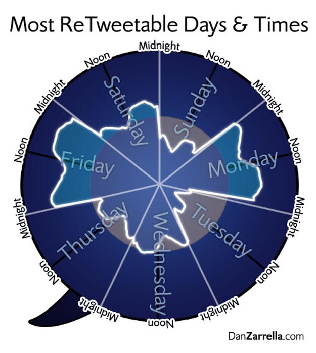 Does all this mean that Twitter RTs don’t really have the value that many of us place on them? A site called Simply Zesty ran their own RT analysis a few months ago, and came up with some interesting conclusions. For them, on their blog, they found that the click through rate on RTs was about 0.33%, which is disturbingly low.