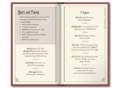 The book will set you back a minimal $8.95, and the updates and tweets range from “Interpersonal Posts” to “Cultural Comments” and literally contain hundreds and hundreds of tweets and updates. What I have found though is that if you are unable to come up with something witty, clever or if you just don’t have anything interesting to share, a simple “Good morning!” or a “How’s everyone doing?” is probably going to unleash some rather interesting topics from your followers or friends which will send you off on your daily journey. It’s worth a thought I think.